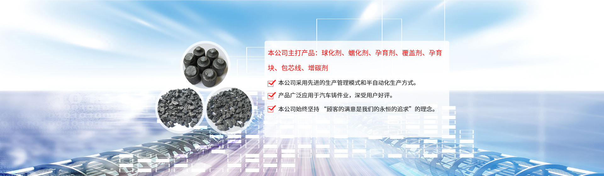 公司引進(jìn)日本企業(yè)的生產(chǎn)管理模式,半自動(dòng)化生產(chǎn)方式。目前生產(chǎn)能力:球化劑250T/月、孕育劑300T/月、鑄造相關(guān)品200T/月。為嚴(yán)格控制產(chǎn)品質(zhì)量,公司采用國內(nèi)的ICP-AES等離子體發(fā)射光譜儀對采購原